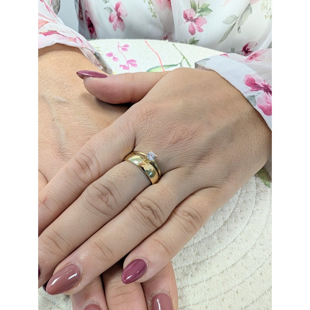 Zlatý dámsky dvojitý prsten s centrálním kamenem