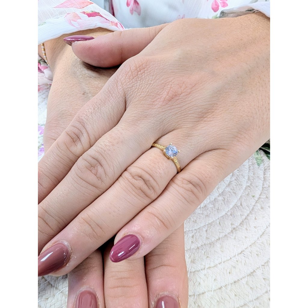 Zlatý dámský prsten s centrálním kamenem a ozdobeným vzorem nekonečno