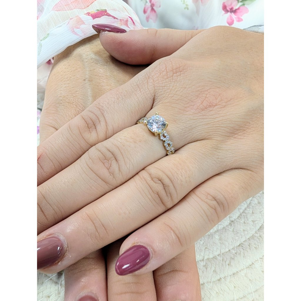 Zlatý dámský prsten s centrálním kamenem a zdobenými srdci se zirkony