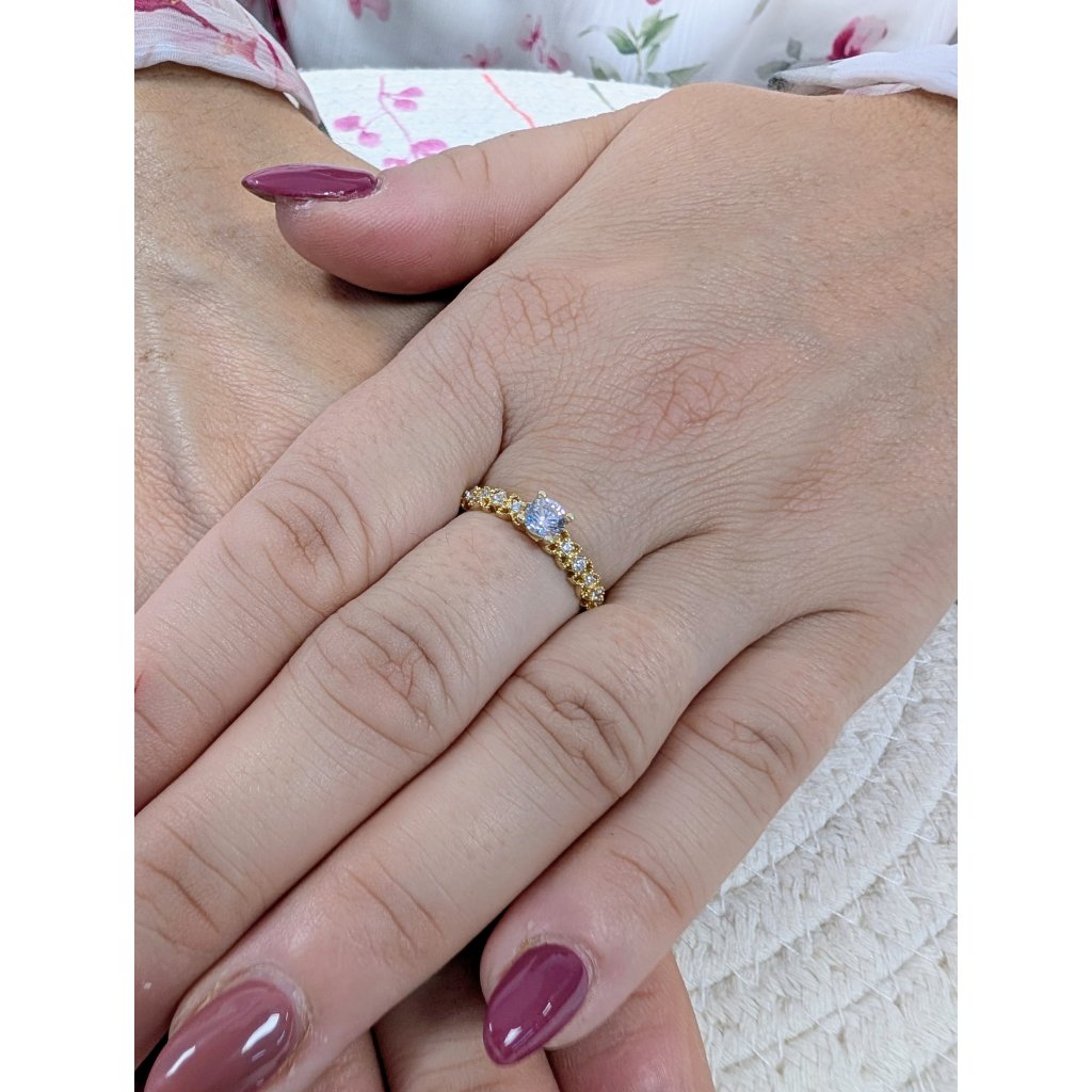 Zlatý dámský prsten s centrálním kamenem a zirkony