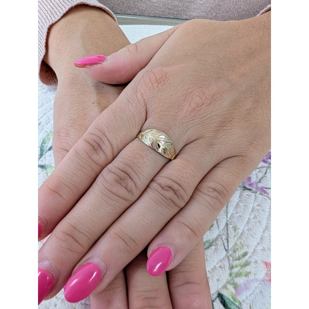 Zlatý dámský prsten s gravírovanými lístky