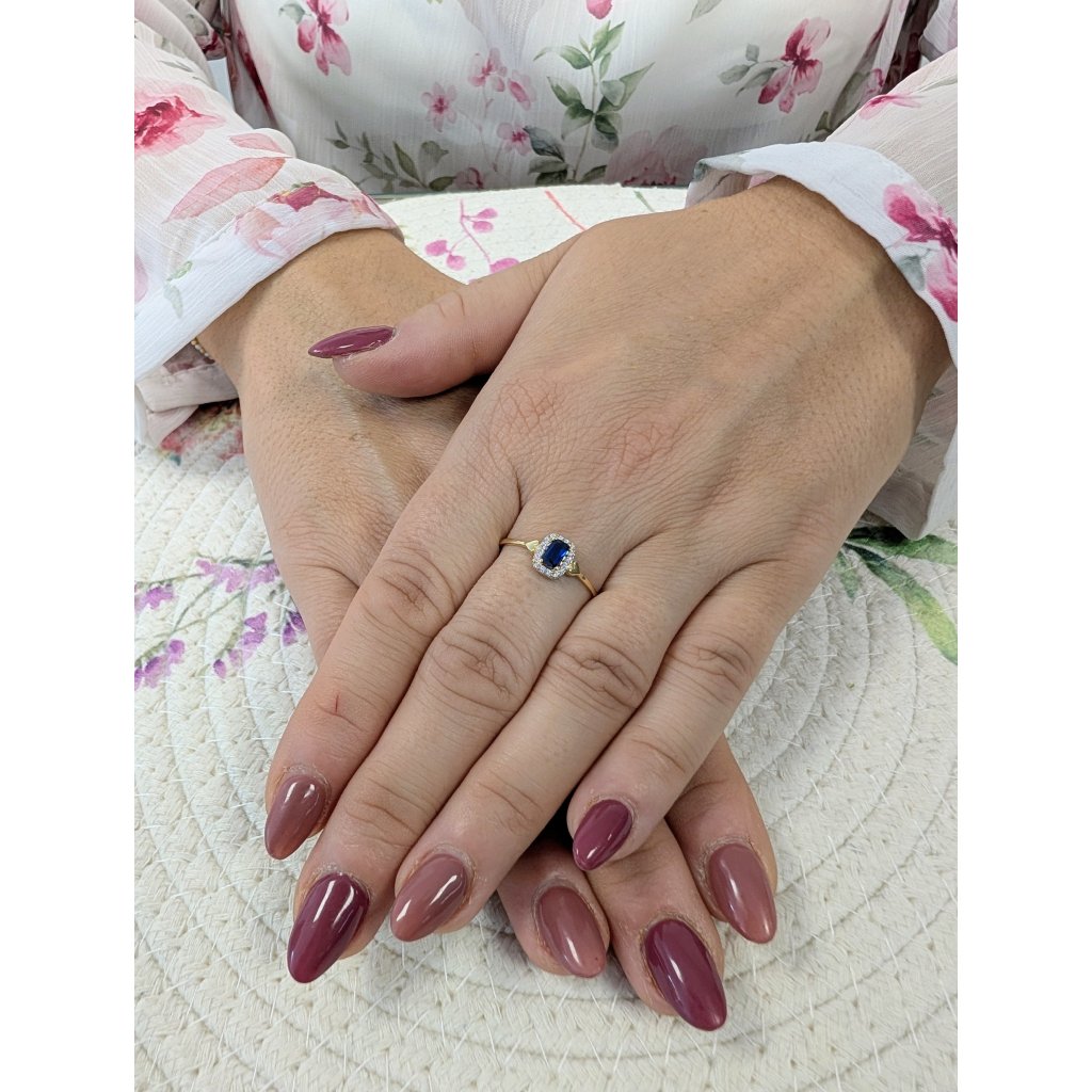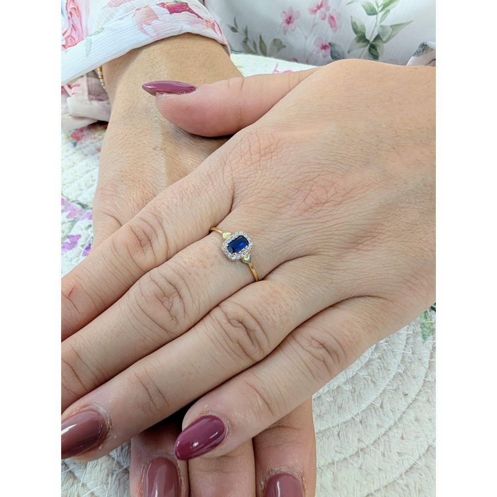 Zlatý dámský prsten s minimalistickým modrým zdobením