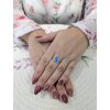 Zlatý dámský prsten s modrým kamenem zdobeným zirkony